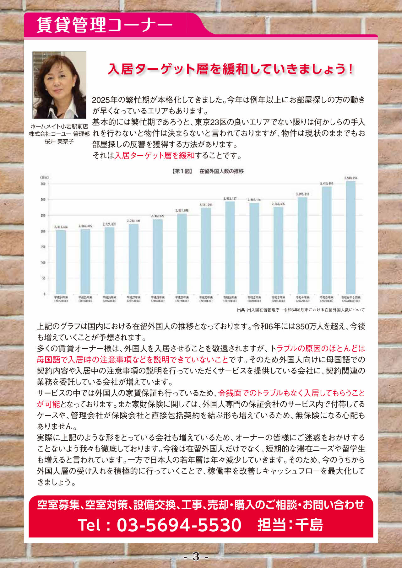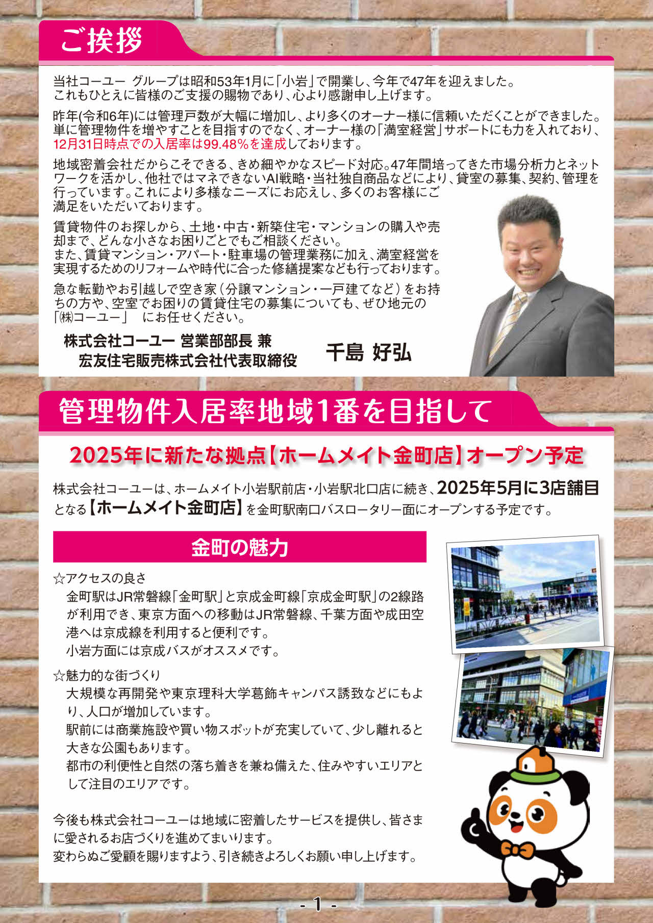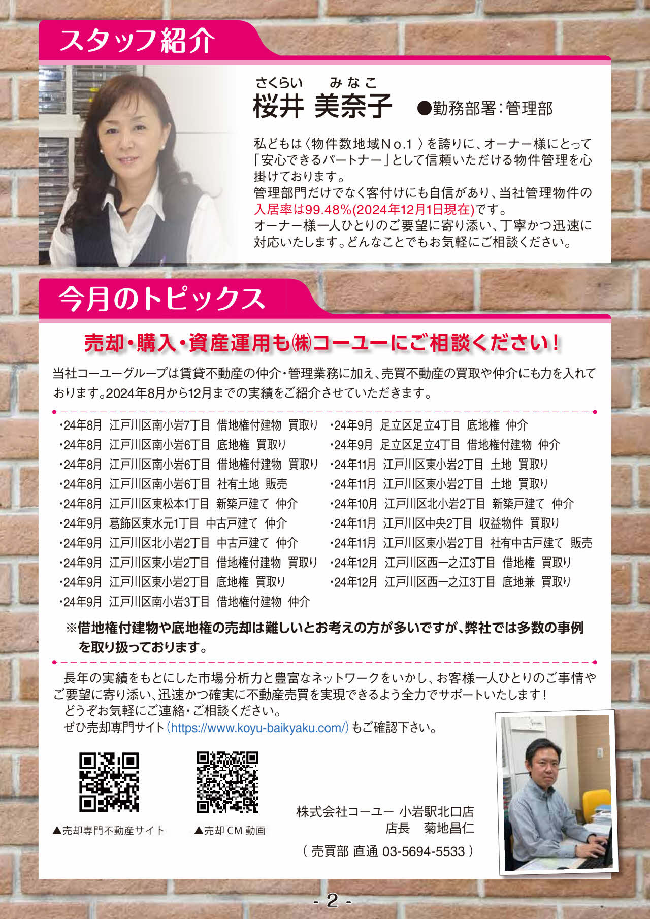 2025年2月号 コーユー通信 2025.02.06 2025年2月号のコーユー通信では"新たな拠点『ホームメイト金町店』オープン予定!!""借地権付建物や底地権の売却も!24年8~12月実績!!" next 賃貸物件のバイク置き場トラブルとは?トラブルの事例もご紹介 2025.02.11